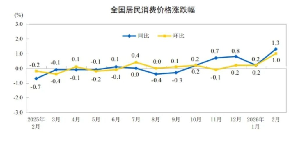 2026年2月份CPI涨幅扩大PPI降幅继续收窄